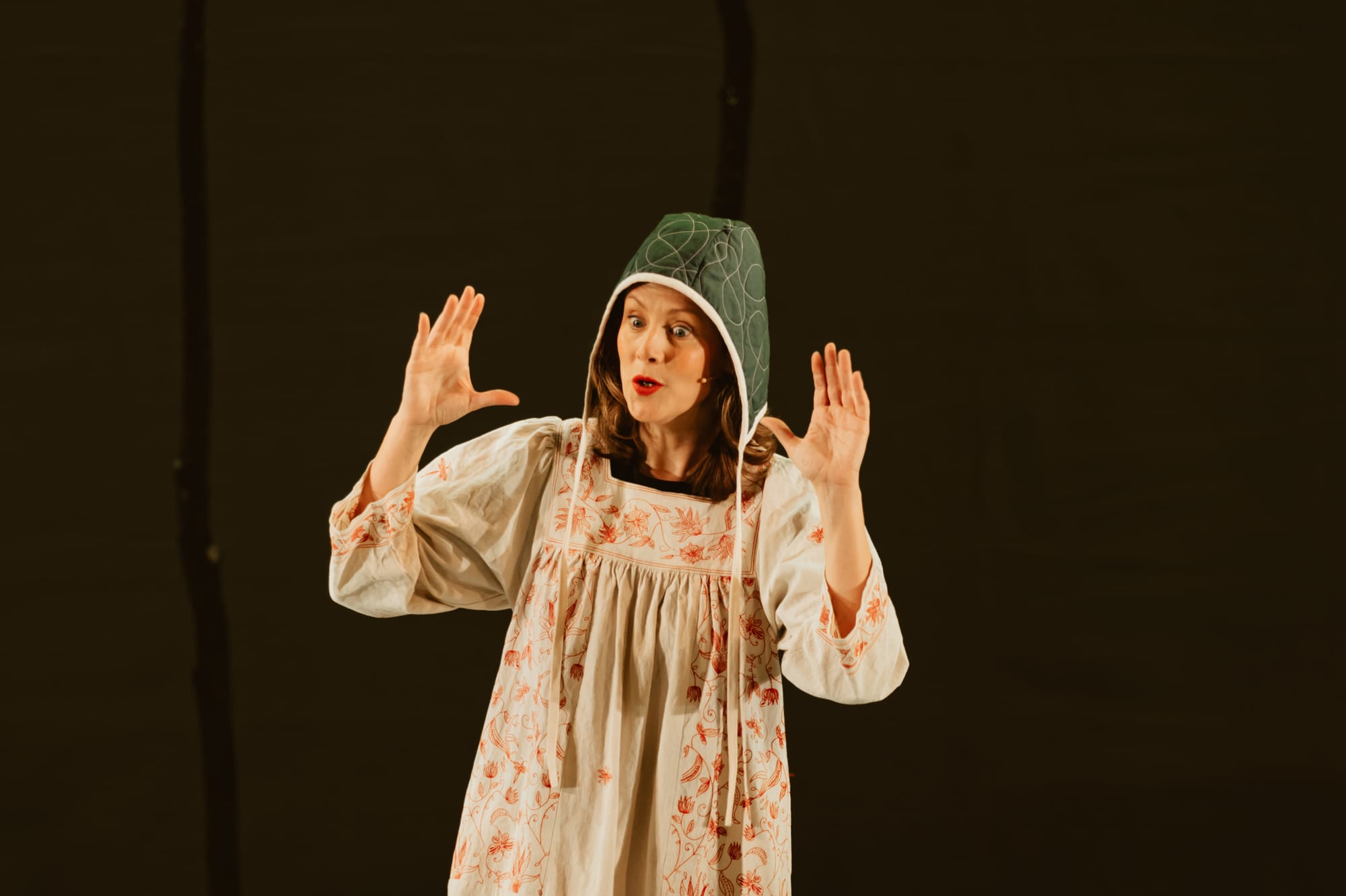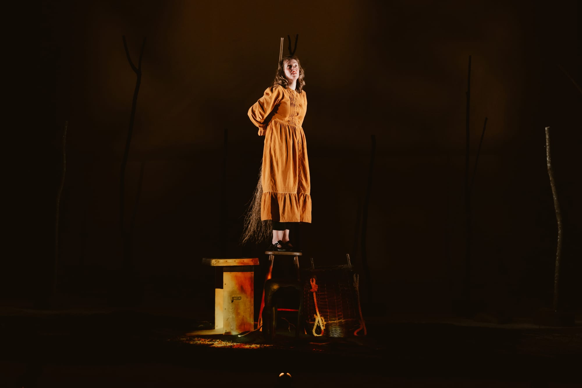 What begins as sharp comedy about Deliveroo-fuelled distraction culture, middle-class eco awkwardness and spiralling guilt about everything from teabags to kettles gradually deepens into something far more raw. The emotional centre arrives during a storm sequence that brings together the death of her cat Mr Tubbs, a miscarriage, and the long-awaited arrival of a tree surgeon to fell a 350-year-old oak she suddenly can’t bear to lose. Personal grief and ecological grief collide here in a way that feels startlingly direct. The figure of the witch shifts meaning across the performance too - at first outsider, then ecological witness, and finally something closer to feminist lineage and survival strategy.